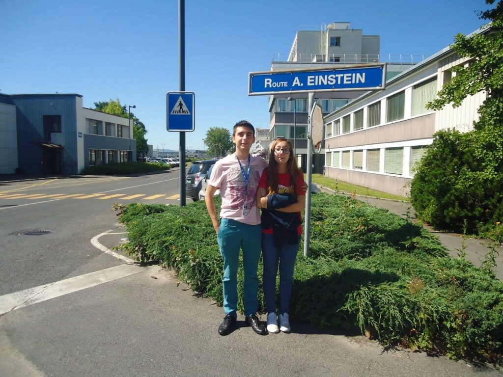 Giving my sister a tour of CERN. Here we’re in front of the sign for “Route A. Einstein”, or A. Einstein Road. Years later, she chose to double major in physics and philosophy, and currently is pursuing a master’s in philosophy of science.