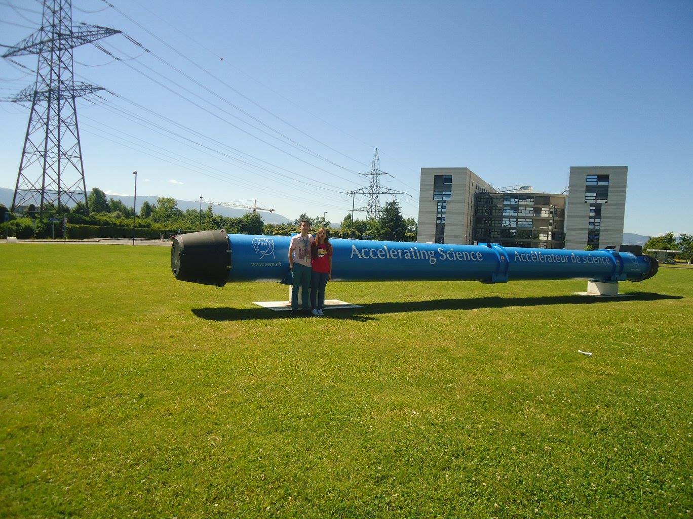 With my sister, in front of a section of the Large Hadron Collider LHC. Behind us is building 40, one of the relatively young and good looking buildings in CERN.