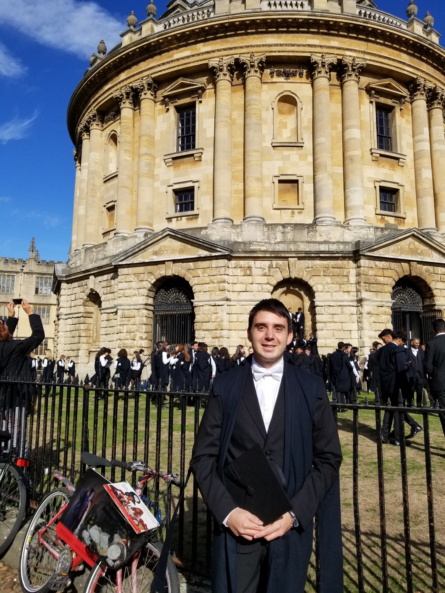 Another photo from the matriculation day, in front of arguably the most famous building in Oxford: Radcliffe Camera. The few students wearing their mortarboards in the background were executed later that day.